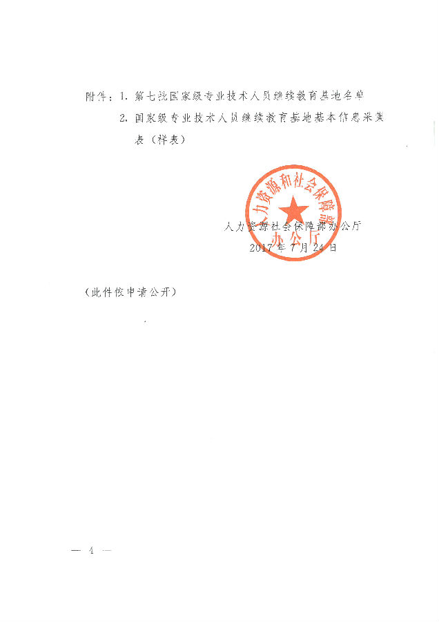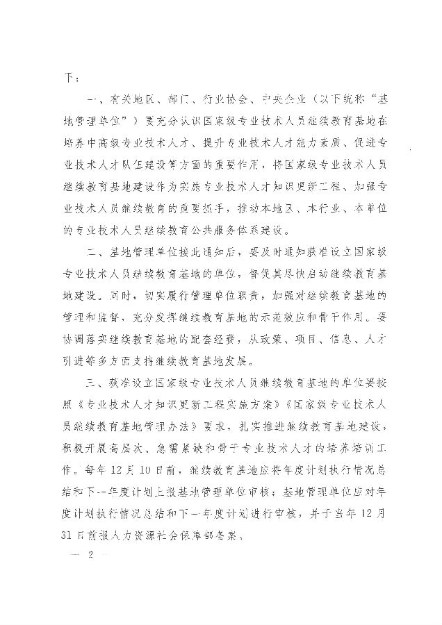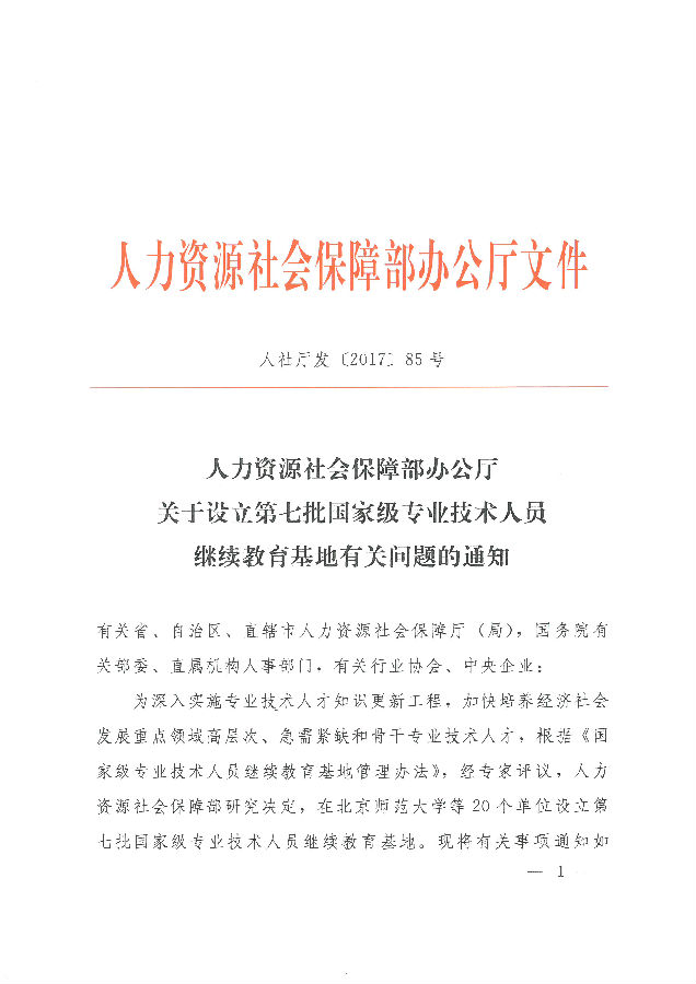关于设立第七批国家级专业技术人员继续教育基地有关问题的通知